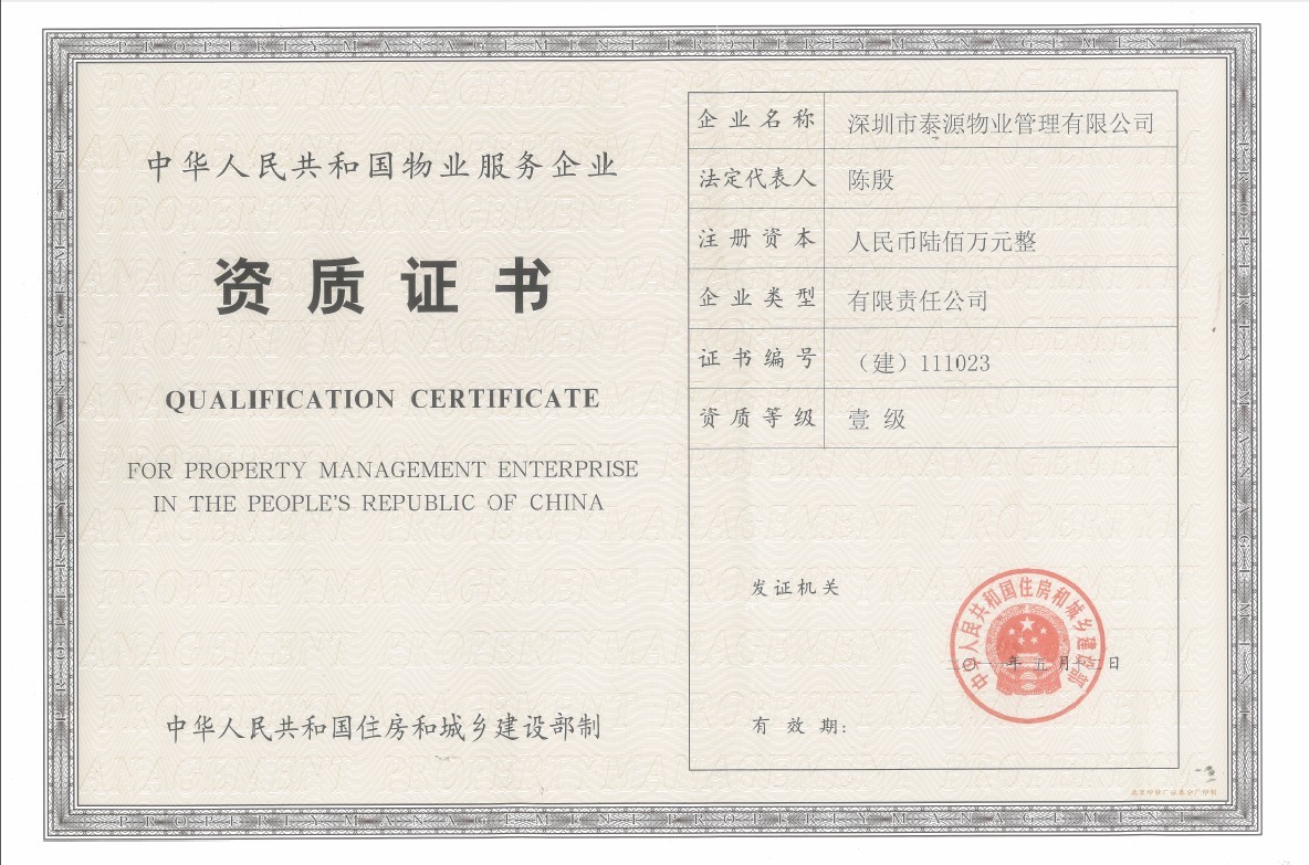 日前,從建設(shè)部獲得喜訊,深圳市泰源物業(yè)管理有限公司順利通過建設(shè)部資質(zhì)審查,成功晉升物業(yè)管理國家一級(jí)資質(zhì)企業(yè)。