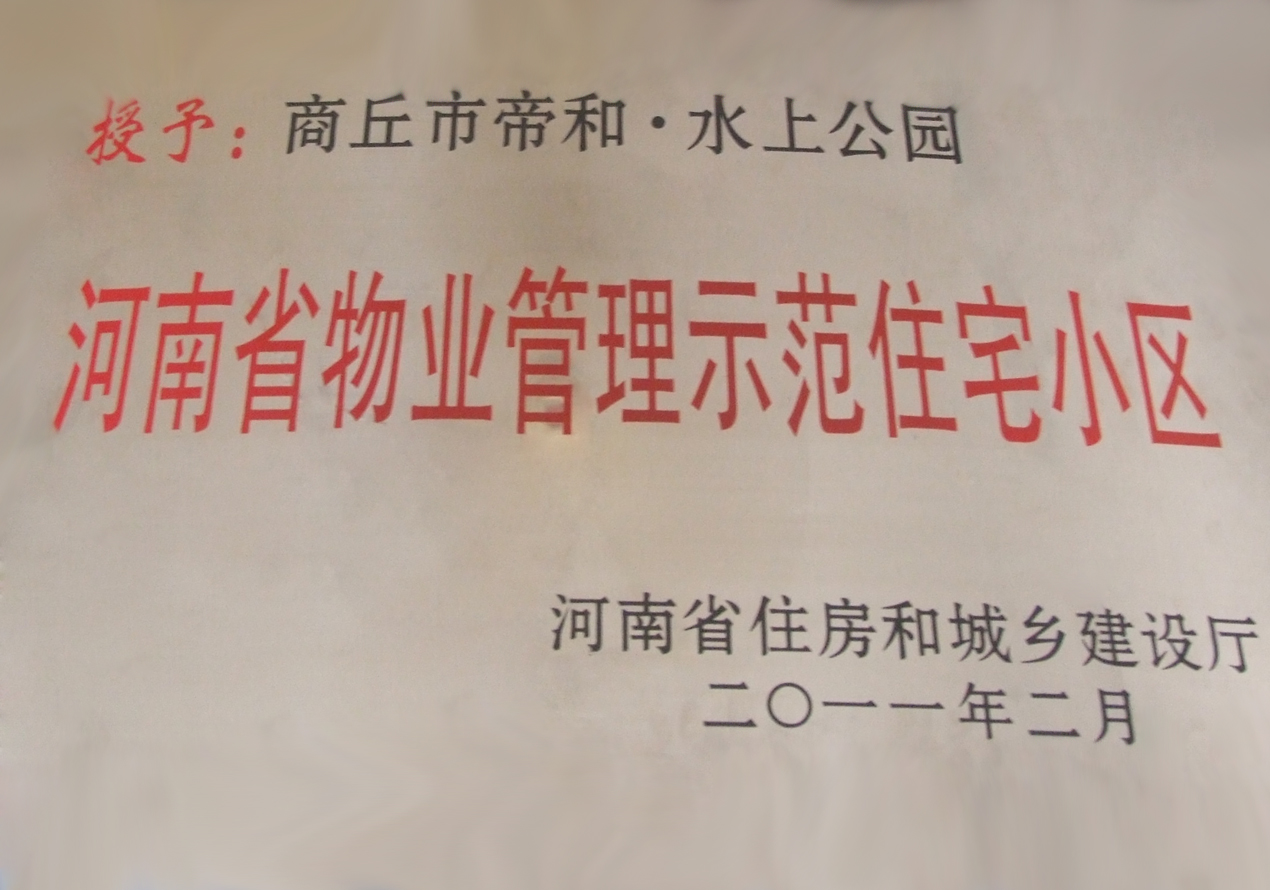 公司自20081月歷經(jīng)重組、改名以來,本著“業(yè)主至上、服務(wù)第一”的原則,積極推行專業(yè)化、標(biāo)準(zhǔn)化管理,服務(wù)質(zhì)量不斷提升,經(jīng)營業(yè)績顯著。注重以人為本,提倡人性化服務(wù),以微笑服務(wù)、親情服務(wù)和規(guī)范服務(wù)來贏得業(yè)主的滿意和信任。公司河南帝和.水上公園于2009年被商丘市人民政府授予“市級(jí)園林式單位”,2011年,先后被授予“河南省商丘市物業(yè)管理先進(jìn)單位”及“河南省物業(yè)管理示范住宅小區(qū)”。