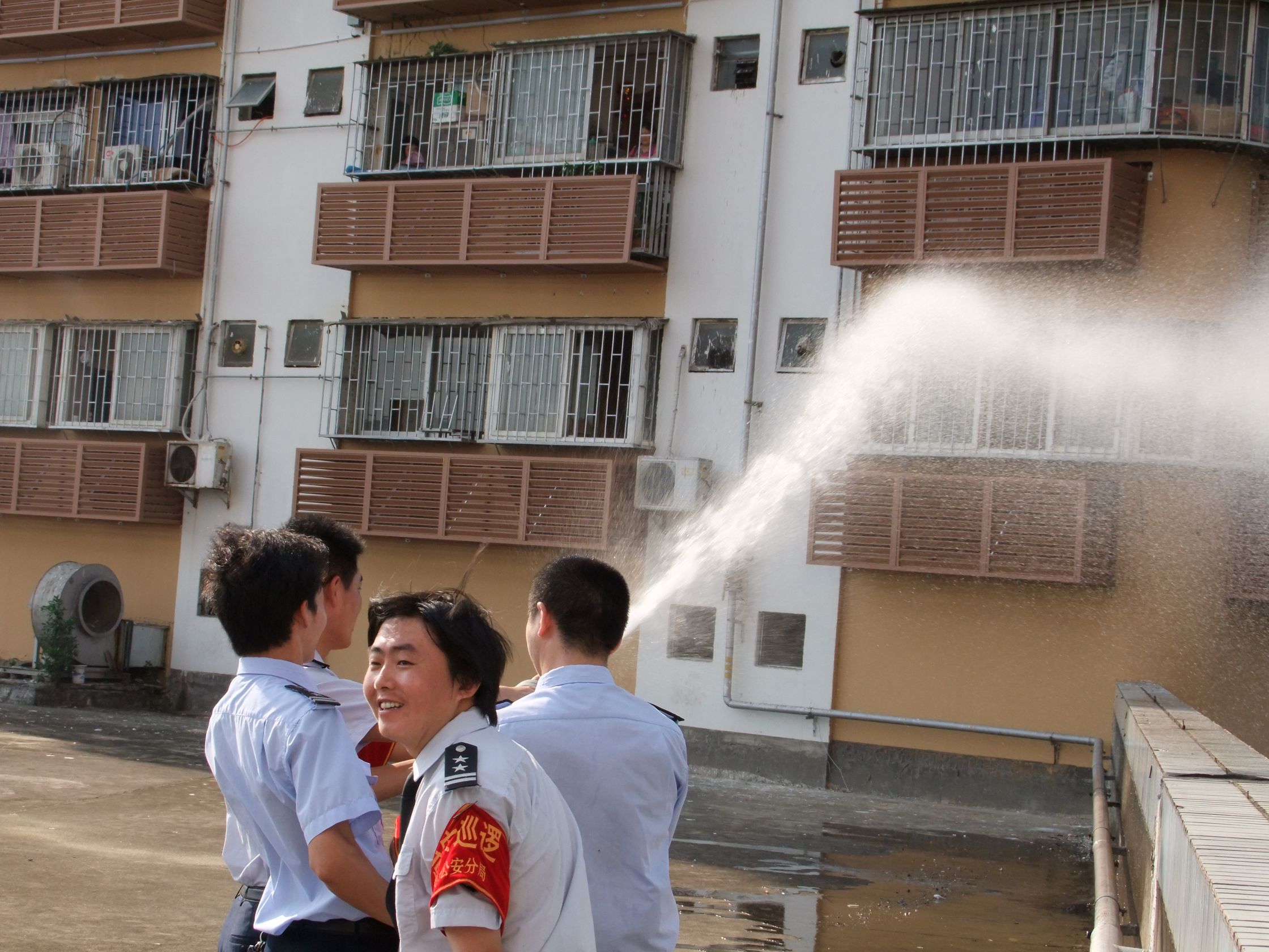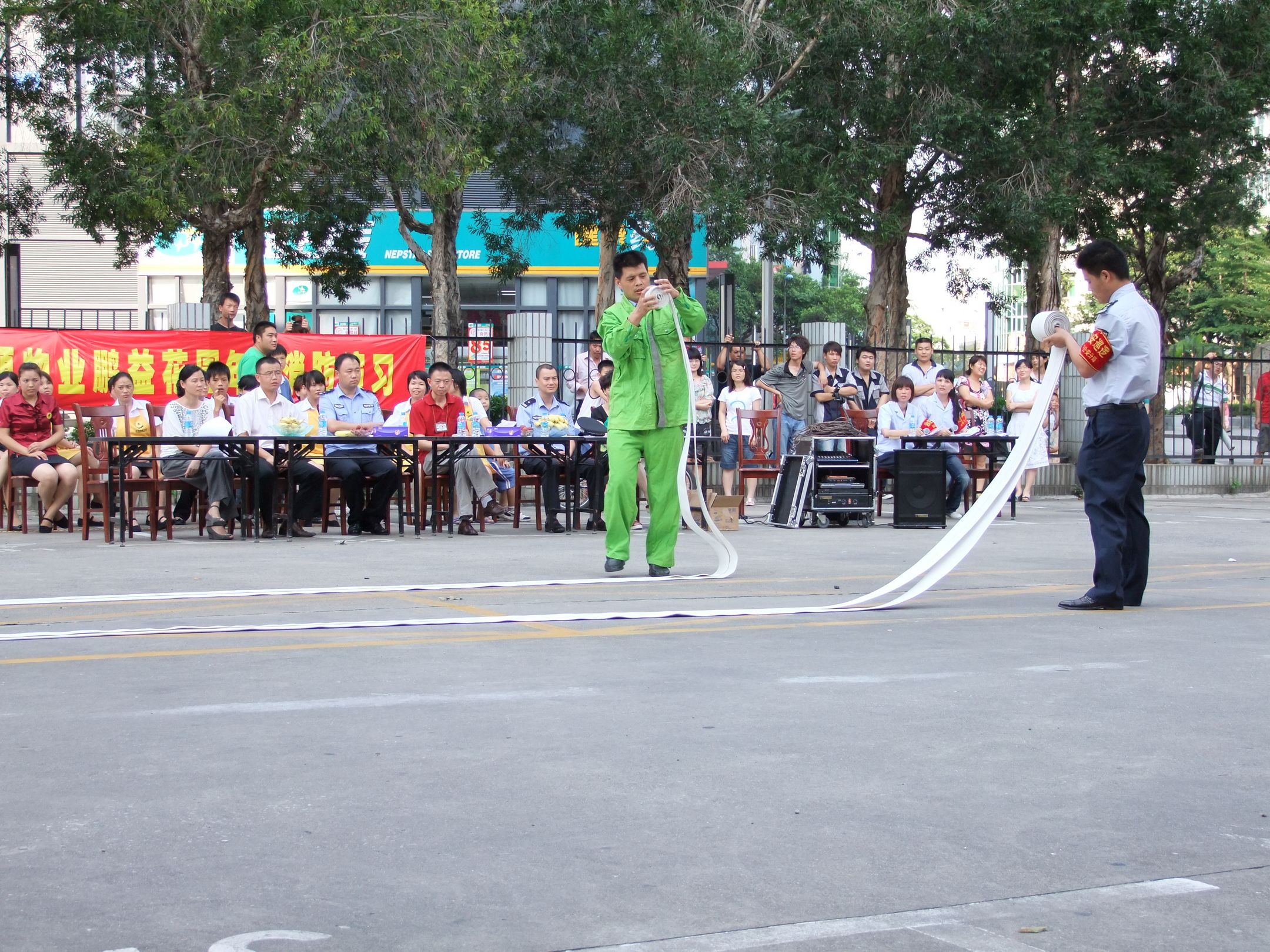 16點(diǎn)08分,3、4、5樓所有人員全部撤離到安全區(qū)域,義務(wù)消防隊(duì)出水槍將火情控制;16點(diǎn)12分火勢(shì)已經(jīng)撲滅;16點(diǎn)16分,演習(xí)結(jié)束。