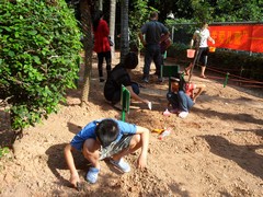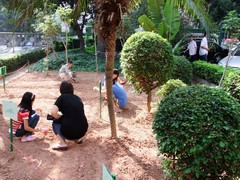 此次活動主要以家庭為單位,通過抽簽的方式在規(guī)劃好的空地上選擇家庭小農(nóng)場??矗麄冇械钠秸恋?、有的播花種、有的種樹,如同一個現(xiàn)實(shí)版的QQ農(nóng)場。