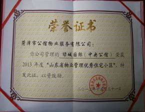 近日,山東省菏澤市住房和城鄉(xiāng)建設(shè)局向公館物業(yè)服務(wù)有限公司頒發(fā)了“山東省物業(yè)管理優(yōu)秀住宅小區(qū)”榮譽(yù)證書。這標(biāo)志著泰源物業(yè)旗下的公館物業(yè)公司的管理水平又上新臺階。