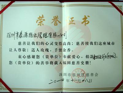 捐款金額雖不多,但體現(xiàn)了鵬益花園管理處全體員工扶貧濟(jì)困的一份愛心,受到了福田區(qū)慈善會(huì)的贊揚(yáng)。