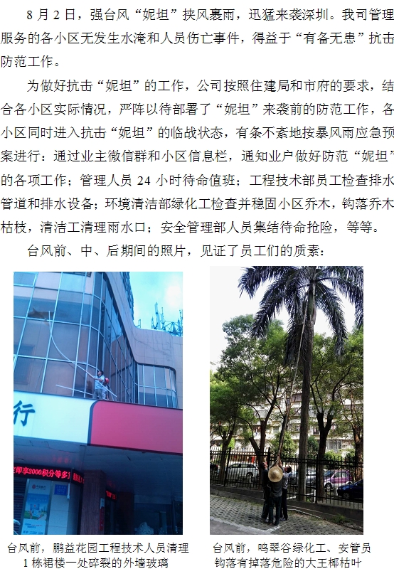 各小區(qū)扎實(shí)做好抗“妮坦”強(qiáng)臺(tái)風(fēng)的工作