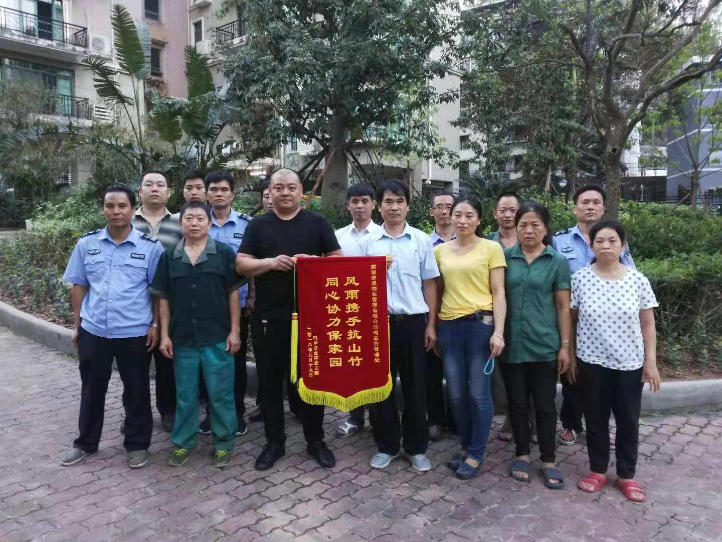 臺(tái)風(fēng)“山竹”915-16日襲擊深圳。在公司的部署下,臺(tái)風(fēng)前各小區(qū)按臺(tái)風(fēng)應(yīng)急預(yù)案進(jìn)入有條不紊防御狀態(tài):公司召開各小區(qū)主任臺(tái)風(fēng)防御動(dòng)員會(huì),并進(jìn)行安全隱患排查和處理,各小區(qū)向業(yè)主發(fā)布超強(qiáng)臺(tái)風(fēng)“山竹”防御通知。各小區(qū)同時(shí)組織排水設(shè)備檢查、排水管道疏通、防洪沙包準(zhǔn)備、樓層門窗巡視、傾斜喬木穩(wěn)固等等。妥善的防御有效地減少了臺(tái)風(fēng)損失??古_(tái)風(fēng)期間涌現(xiàn)了一批好領(lǐng)導(dǎo)、好員工,各小區(qū)業(yè)主給予了很高的評(píng)價(jià)和贊揚(yáng)。其中,鳴翠谷小區(qū)155戶業(yè)主有92戶自愿捐款9300元,獎(jiǎng)勵(lì)管理處員工,并授予錦旗表彰;大益廣場(chǎng)業(yè)主委員會(huì)專門召開表彰會(huì)議,拿出經(jīng)費(fèi)獎(jiǎng)勵(lì)表現(xiàn)突出的員工。