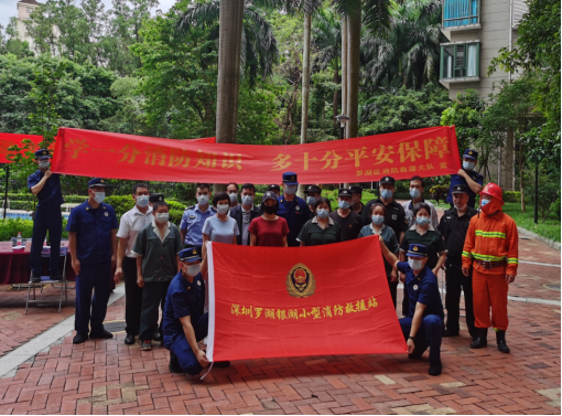演練結(jié)束后,消防救援站人員、業(yè)主委員會(huì)主任與參演人員合影留念