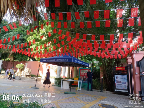 在園區(qū)里,到處彌漫喜慶的氣息,透露幸福的氣氛。在這美好的節(jié)日里,寄托著我們對(duì)美好生活的無限熱愛和向往。佳節(jié)雙至,情意濃濃,我們用誠摯的祝福,祝愿祖國(guó)永遠(yuǎn)繁榮昌盛!祝愿全體業(yè)主幸福美滿!