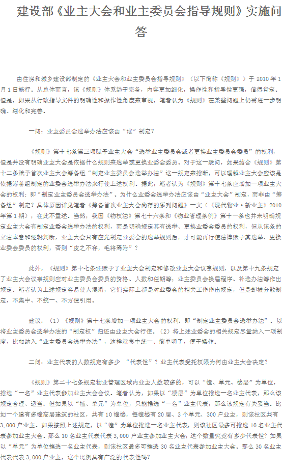 建設(shè)部《業(yè)主大會和業(yè)主委員會指導規(guī)則》實施問答